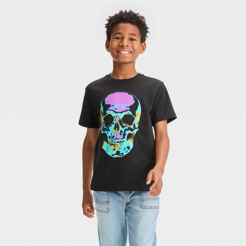 Boys Skull Short Sleeve Graphic T Shirt art class Black XS