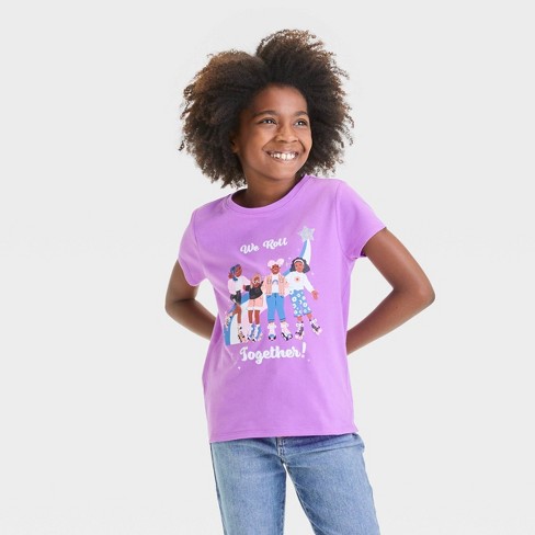 Girls Short Sleeve We Roll Together Graphic T Shirt Cat Jack Violet XS