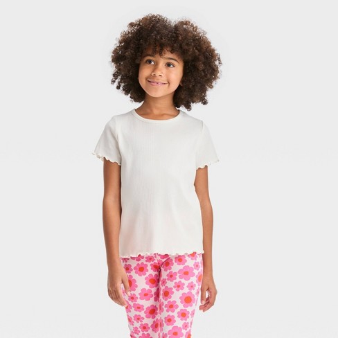 Girls Short Sleeve Ribbed T shirt Cat Jack Off white Xxl