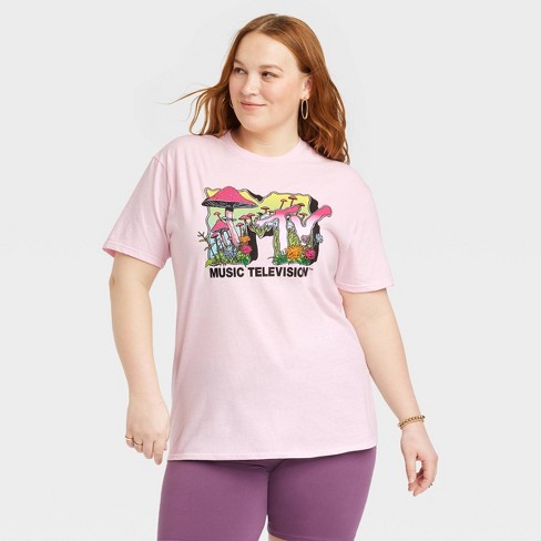 Women s MTV Mushroom Short Sleeve Graphic T Shirt Pink 1X