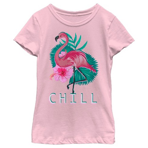 Girl s Lost Gods Flamingo Tropical Chill T Shirt Light Pink Medium