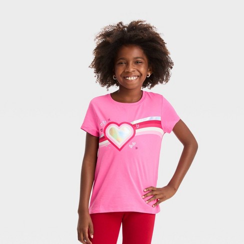 Girls Short Sleeve heart Graphic T shirt Cat Jack Pink