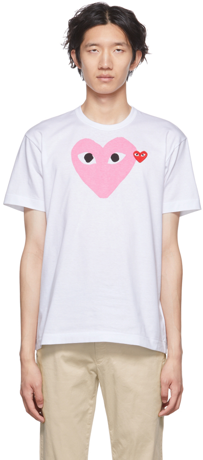 Comme Des Gar ons Play White Pink Big Heart T shirt ModeSens