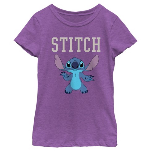 Girl s Lilo Stitch Standing Alien T shirt Purple Berry Large