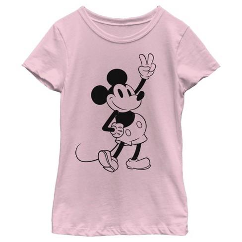 Girl s Disney Mickey Mouse Peace Sign T Shirt Light Pink Medium