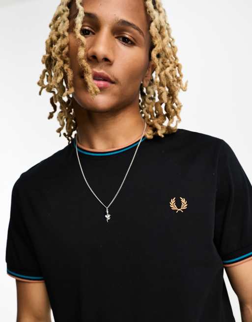 Black and gold fred perry clearance t shirt, Fred Perry multicolor twin tipped T shirt in black ASOS clearance