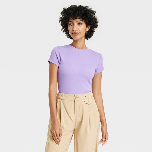 Women s Slim Fit Short Sleeve Ribbed T Shirt A New Day Lavender XL