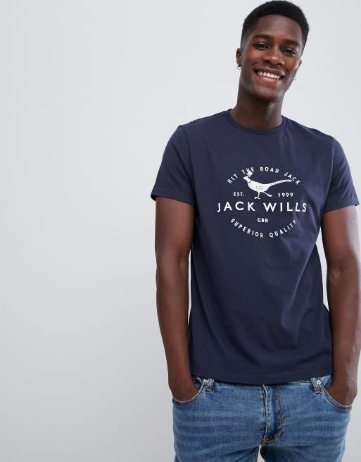 Jack Wills Baysglass large pheasant logo t shirt in navy ASOS