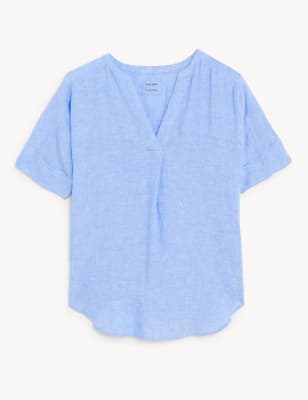 M&s blouses clearance, Pure Linen Short Sleeve Popover Blouse M S US clearance