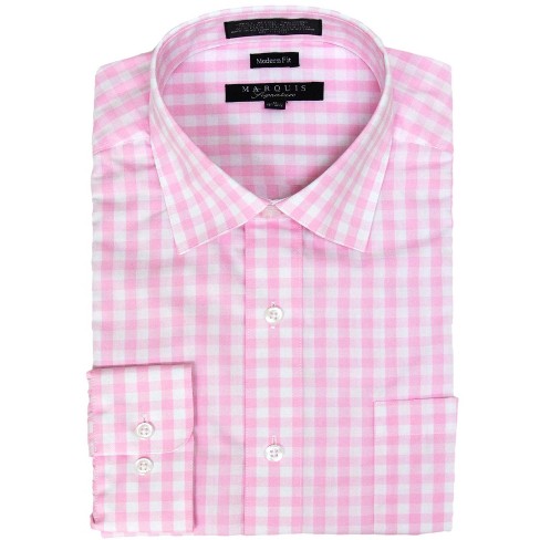 Marquis Men s Pink Gingham Checkered Long Sleeve Modern Fit Shirt Size Large