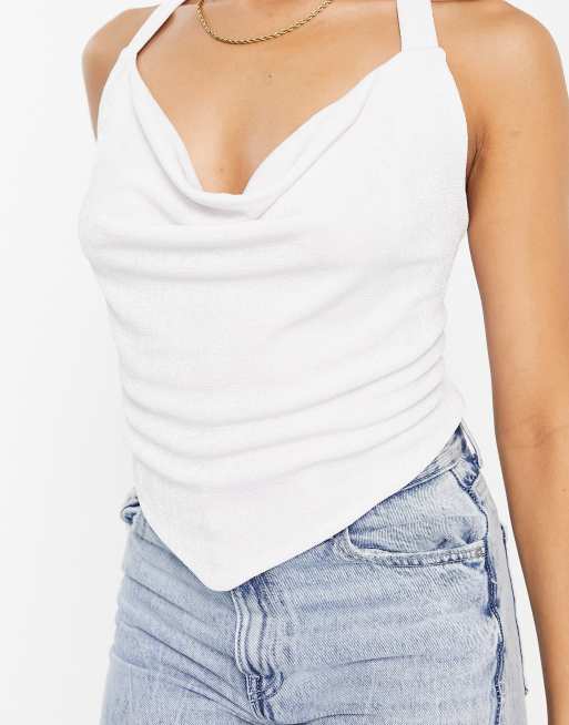White cowl neck clearance top, White Satin Cowl Neck Strappy Back Crop Top clearance