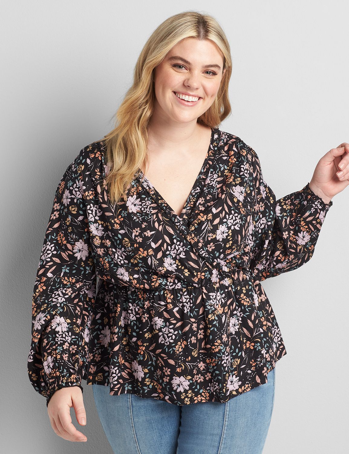 Lane clearance bryant blouses, Classic Long Sleeve Surplice Neck Shirred Waist Crop Blouse clearance