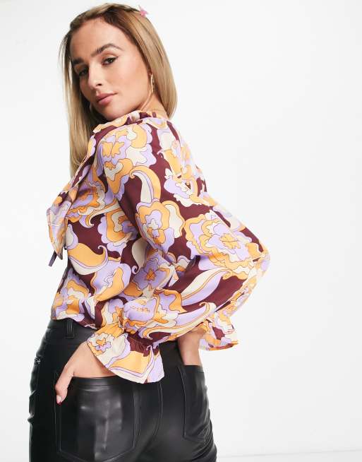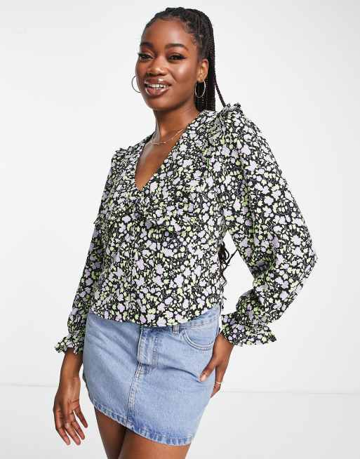 Monki blouse in navy bird print ASOS Blue blouse top Online