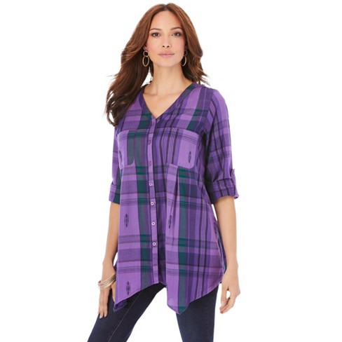 Purple plaid shirt clearance womens