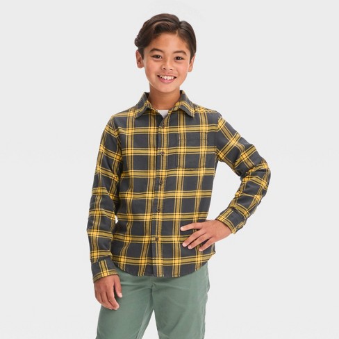 Yellow black plaid clearance shirt, Boys Long Sleeve Plaid Flannel Button Down Shirt Cat Jack Charcoal Gray Yellow XXL Husky clearance