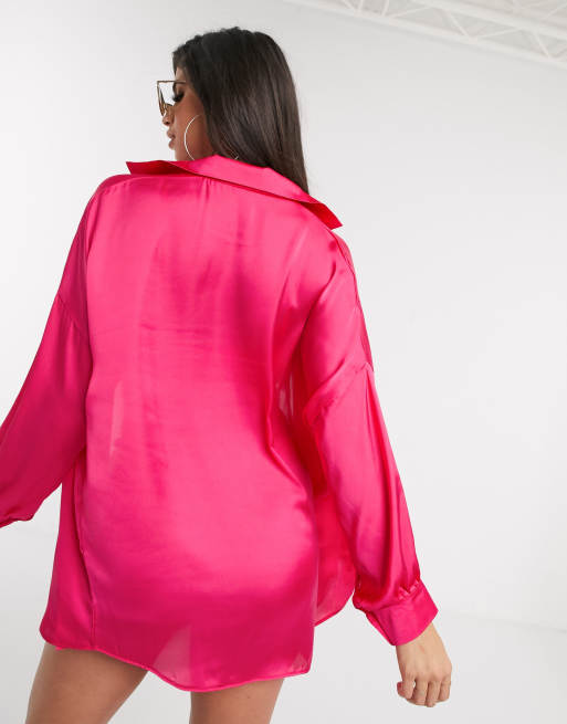 Hot pink silk clearance shirt, Haider Ackermann Draped Silk Satin Shirt Bright Pink 1 635 NET clearance