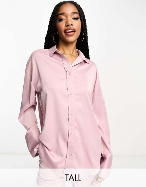4th Reckless Tall exclusive satin shirt in light mauve part of a set
