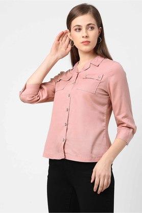 Solid Tencel Collar Neck Womens Casual Wear Shirt