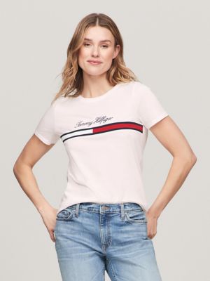 Light pink tommy clearance hilfiger shirt, Script Flag Stripe T Shirt Tommy Hilfiger USA clearance