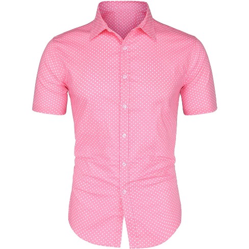 Lars Amadeus Men Short Sleeves Polka Dots Button Down Shirt Pink 42