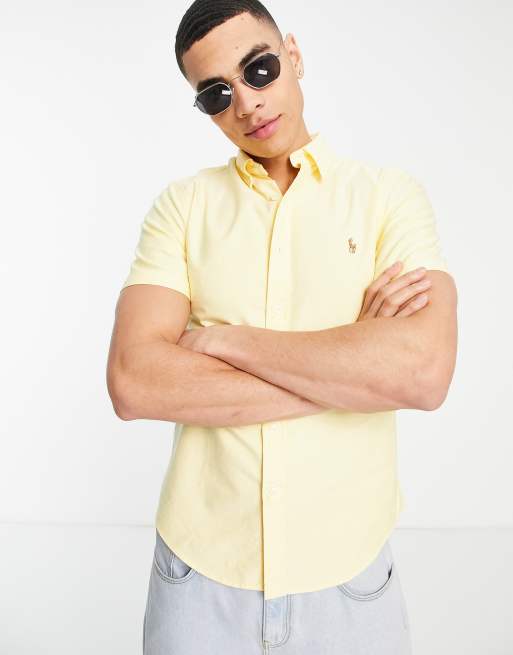 Polo Ralph Lauren icon logo short sleeve slim fit oxford shirt in yellow
