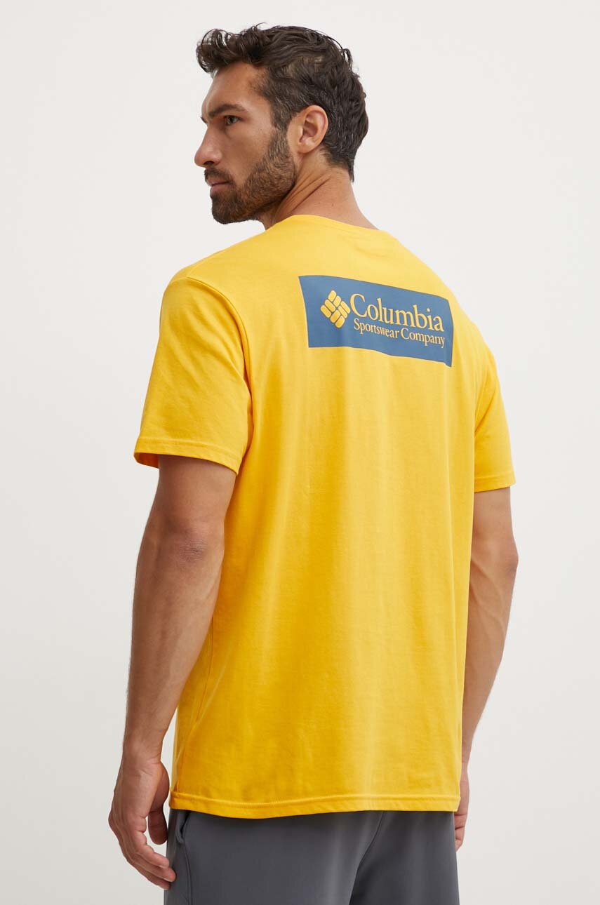 Columbia clearance yellow shirt, Columbia cotton T shirt North Cascades green color buy on PRM clearance