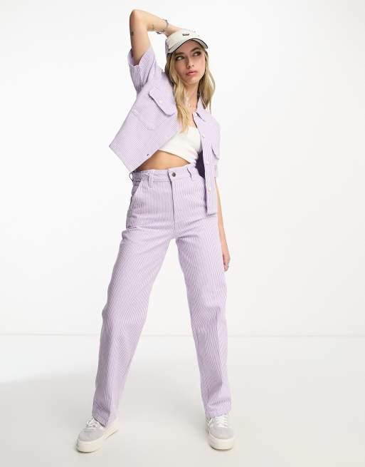 Dickies short sleeve work shirt in hickory stripe lilac