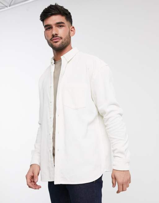 ASOS DESIGN oversized 90s style corduroy shirt in off white