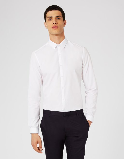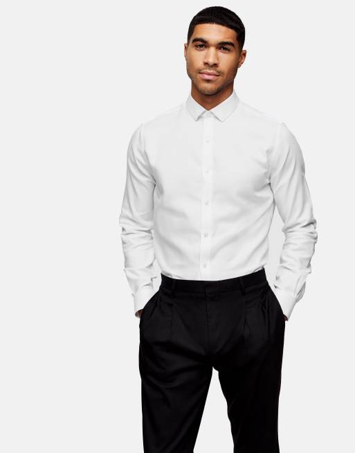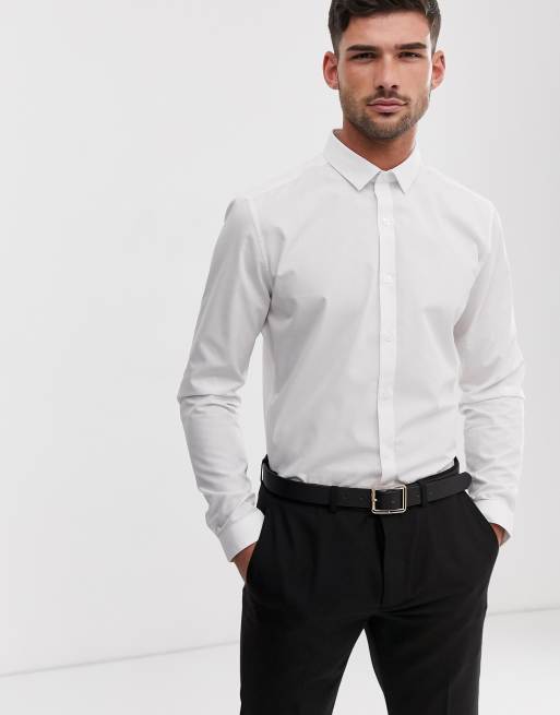 Topman premium long sleeve stretch shirt in white ASOS