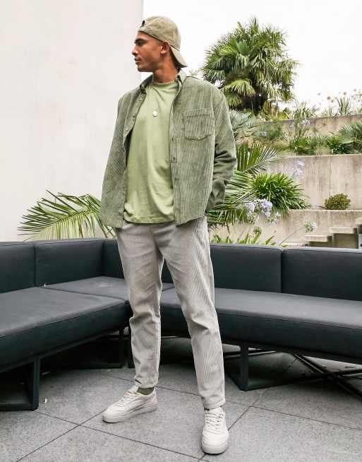 Mens sage green clearance shirt, ASOS DESIGN oversized 90s style cord shirt in sage green clearance