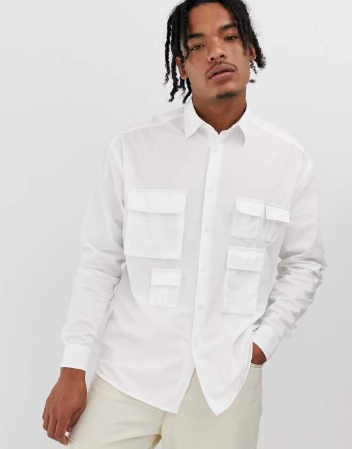 ASOS DESIGN oversized white poplin shirt with utility pockets in white