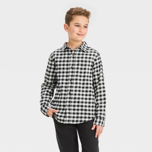 Boys black and clearance white plaid shirt
