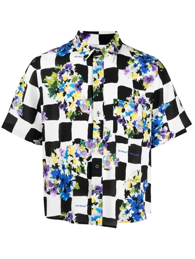 Off white floral clearance shirt, Off white Check Floral Holiday Short Sleeve Button up Camp Shirt clearance