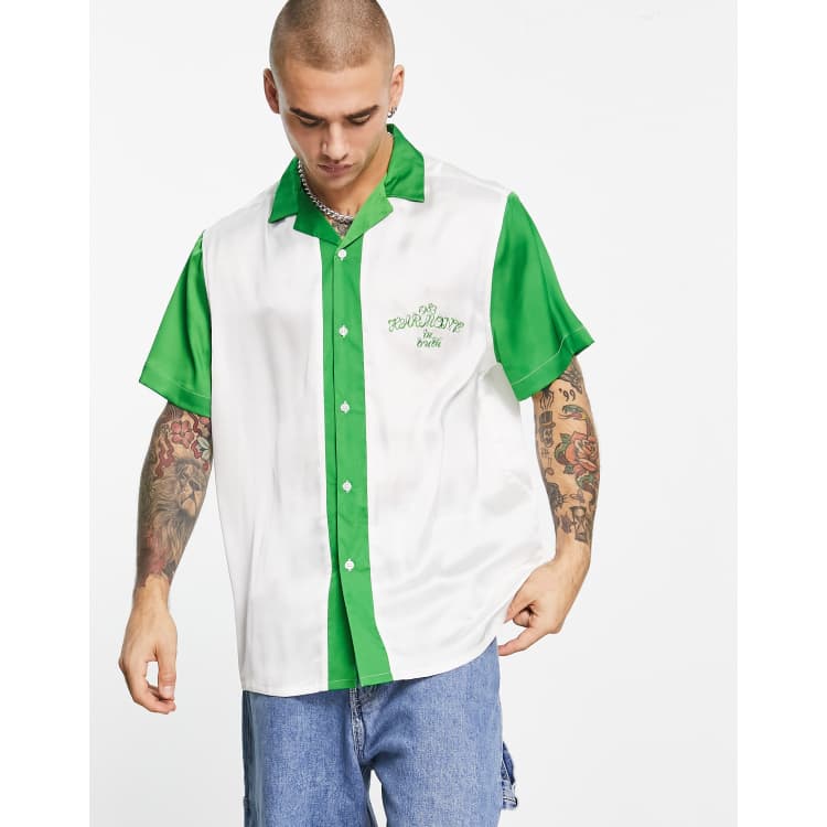 ASOS DESIGN relaxed camp collar bowling shirt in green with chest