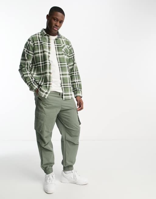 Green and white clearance check shirt, Brave Soul cotton plaid shirt in green clearance