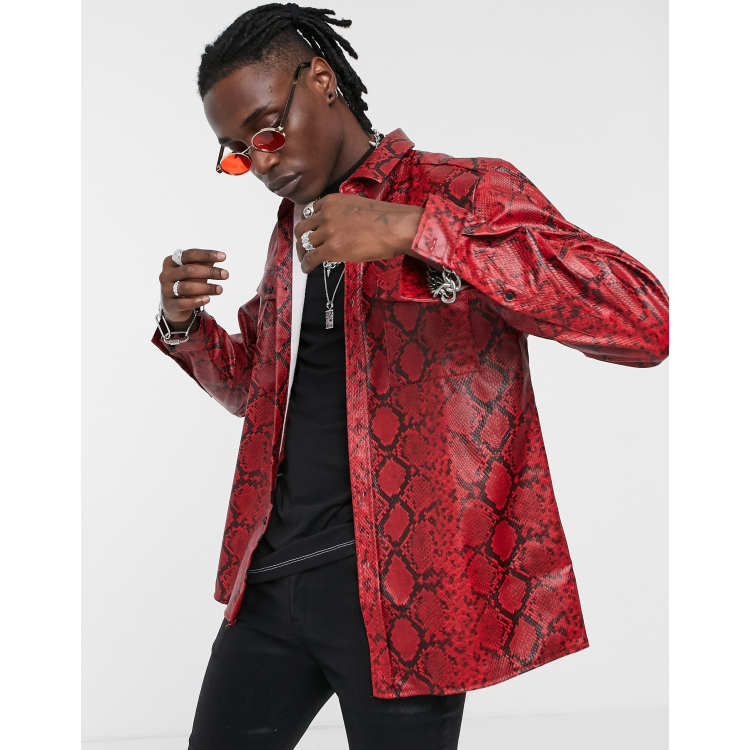 Gcds Snakeskin print Short Sleeve Shirt in Red for Men Lyst