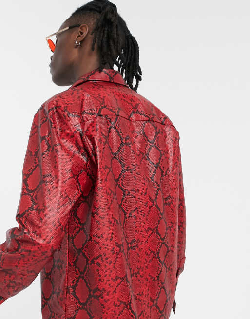 Red clearance snakeskin shirt, Vintage NY Co Red Black Abstract Animal Print Shirt Size Small clearance