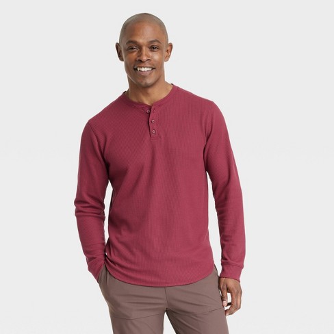 Men s Waffle knit Henley Athletic Top All In Motion Red S Target