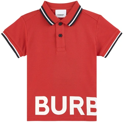 Burberry Kids Jerome Cotton Piquet Red Polo Shirt With Logo