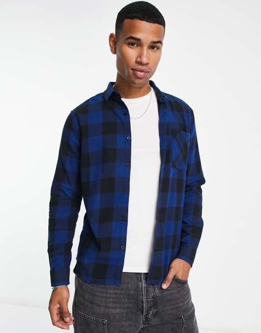 Jack Jones Essentials flannel buffalo check shirt in blue ASOS