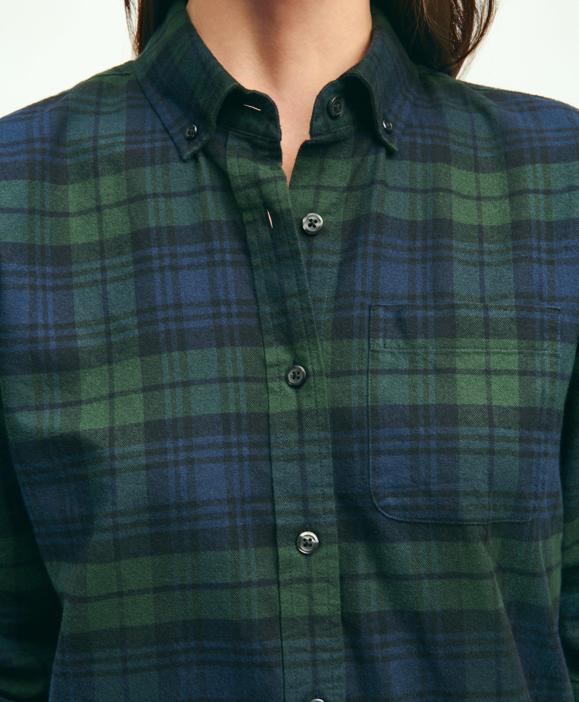 Flannel Button Up Shirt for Tall Women in Emerald and Navy