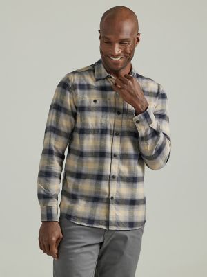 Men s Extreme Motion Working West Plaid Flannel Shirt in HD Lee Gray Plaid
