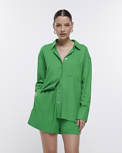 River island green clearance shirt, River Island satin shirt in bright green part of a set clearance