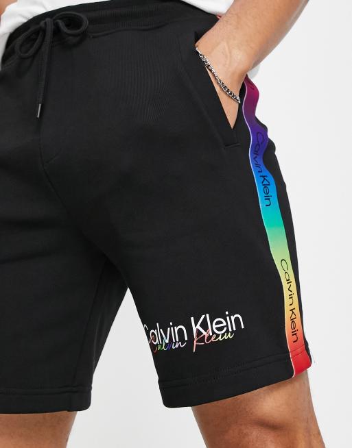 Calvin Klein Pride rainbow logo taping trackie shorts in black ASOS
