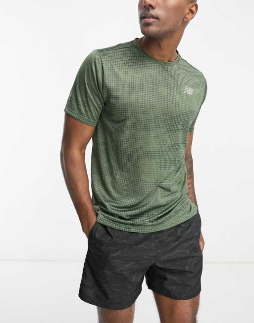New Balance Printed Impact Run short sleeve in khaki ASOS