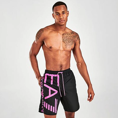 Emporio Armani Men s Ea7 Bermuda Swim Shorts In Black hot Pink