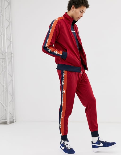 Champion Tricot track jacket with large logo and taping in red ASOS