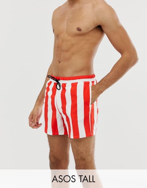 ASOS DESIGN Tall swim shorts in red white stripe short length ASOS