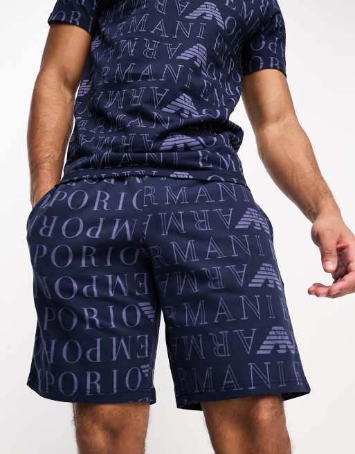 Emporio Armani Bodywear allover logo lounge shorts in navy ASOS
