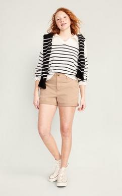 Old navy khaki clearance shorts womens, High Waisted OGC Chino Shorts for Women 5 inch inseam Old clearance
